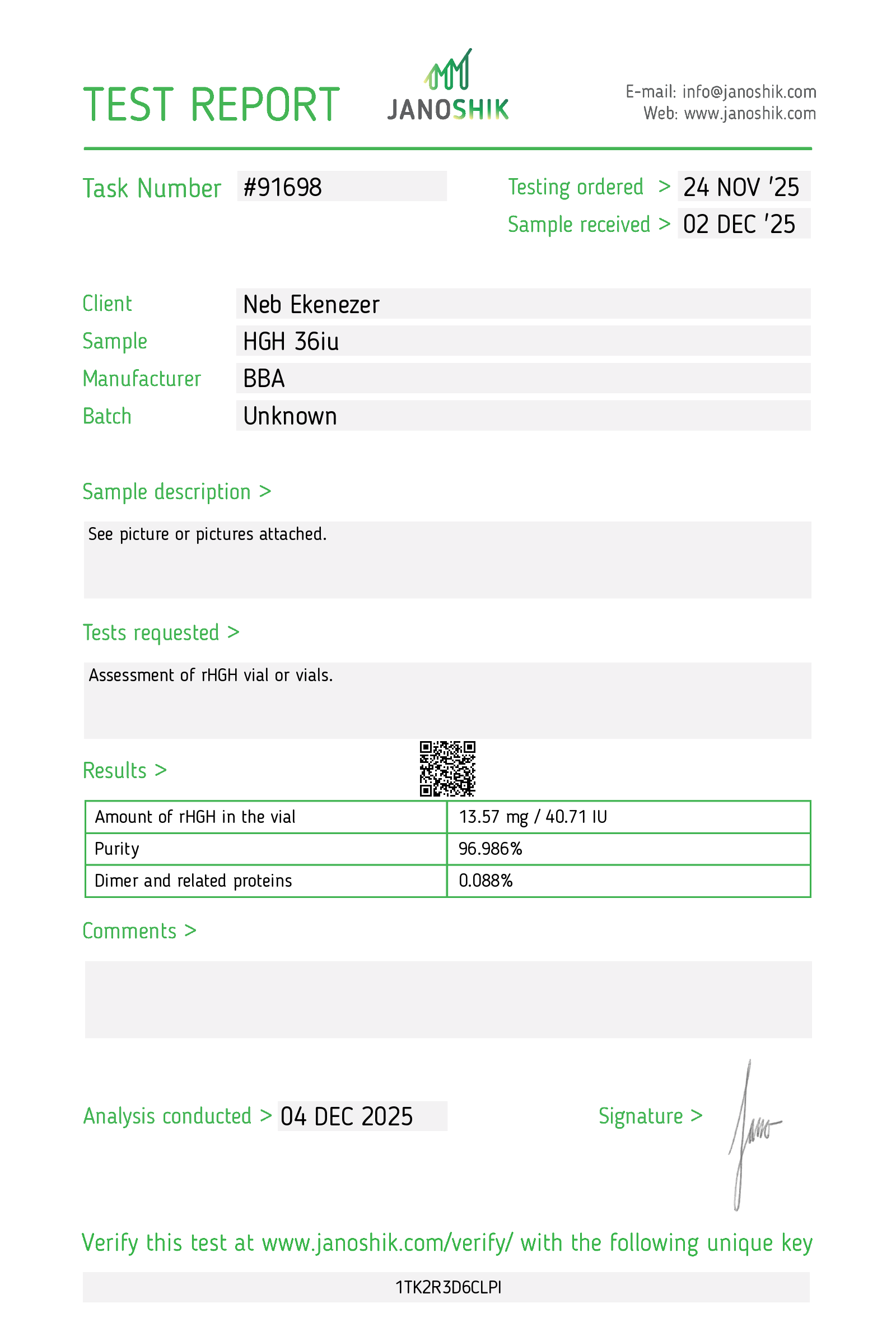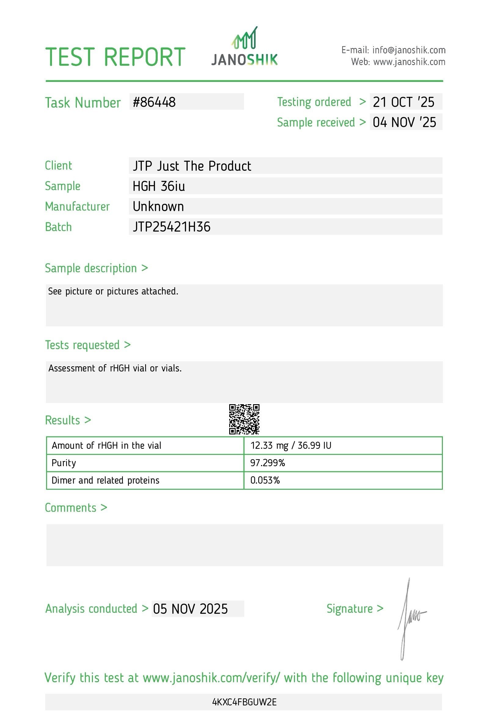 Our products are routinely and rigorously tested for purity, with Certificates of Analysis (COAs) verifiable through independent third-party laboratories.